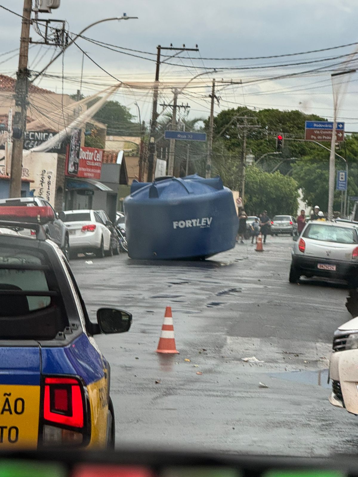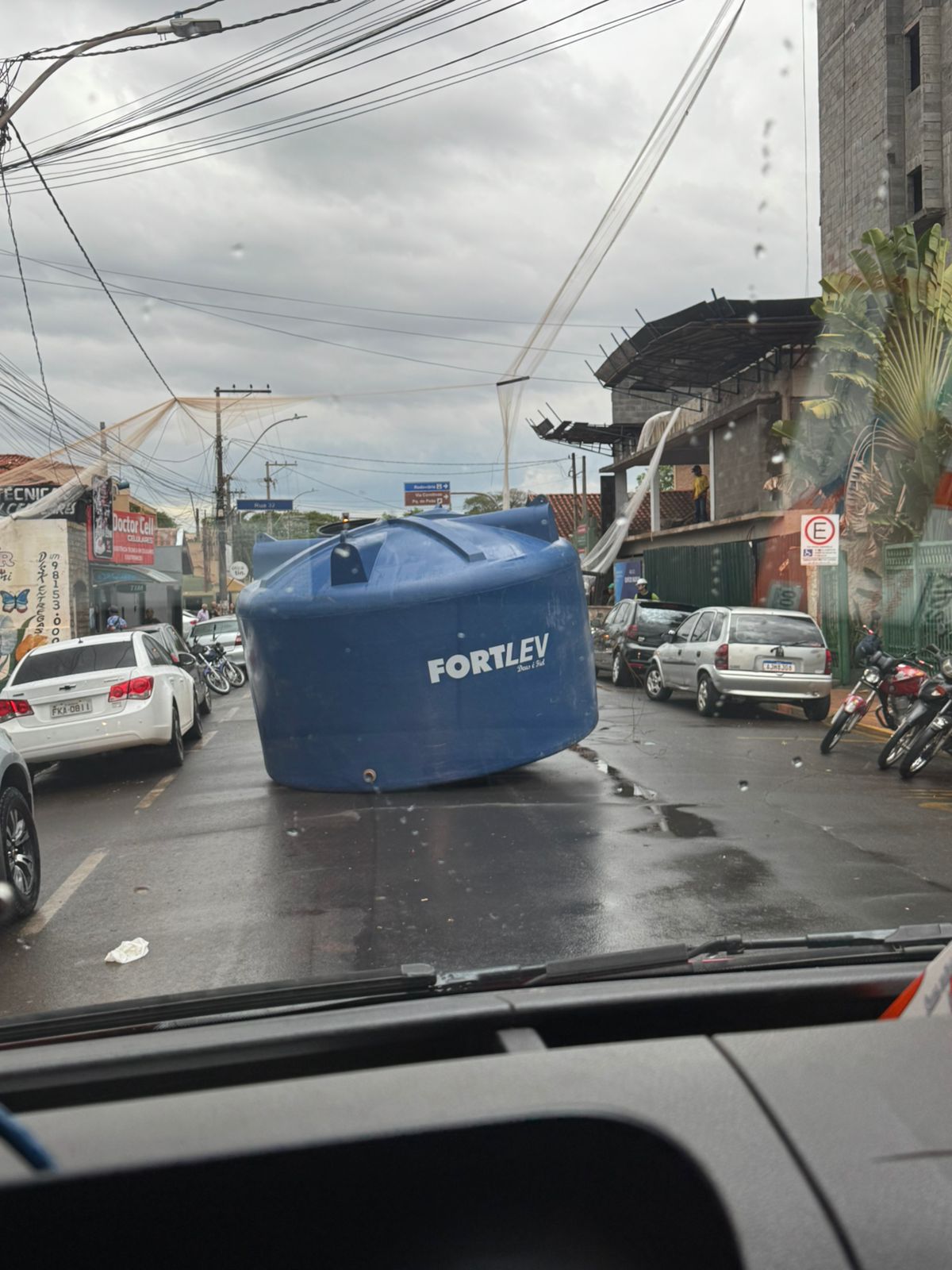 A chuva seguida de um forte vendaval que atingiu a cidade de Barretos no início da tarde desta segunda (13), provocou a queda de duas caixas d´água que estavam do alto de um prédio que está em construção na avenida 23 entre as ruas 30 e 32, no centro de Barretos. Um das caixas caiu na via pública na avenida 23 e a outra sobre o prédio do Ministério do Trabalho. Segundo informações do Corpo de Bombeiros, não foram registradas vítimas. Apenas um imóvel em frente ao prédio ficou sem energia devido a danos na fiação elétrica.