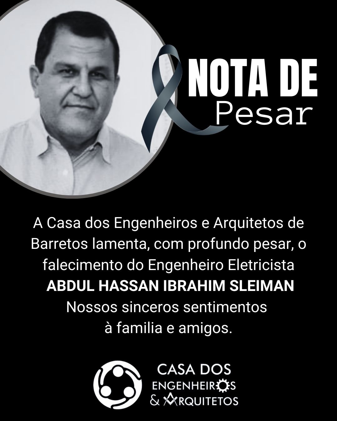 A Casa dos Engenheiros e Arquitetos de Barretos divulgou nota de pesar lamentando a morte do profissional.
