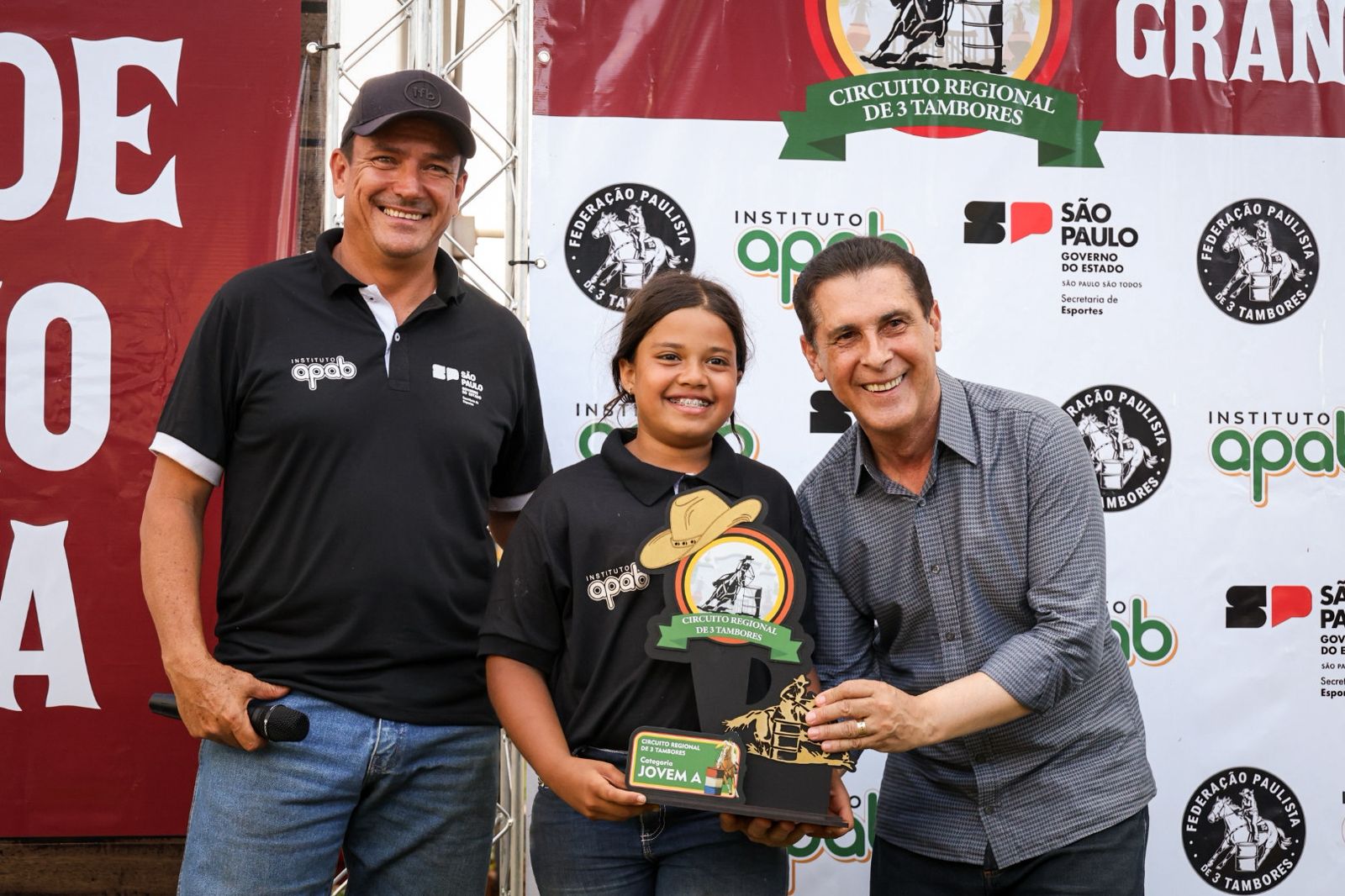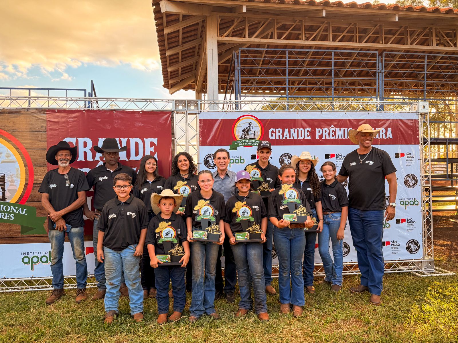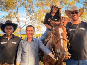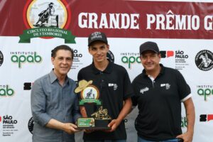 Foto – Alunos do Centro de Formação Equestre de Barretos recebendo premiação do deputado Sebastião Santos em Guaíra