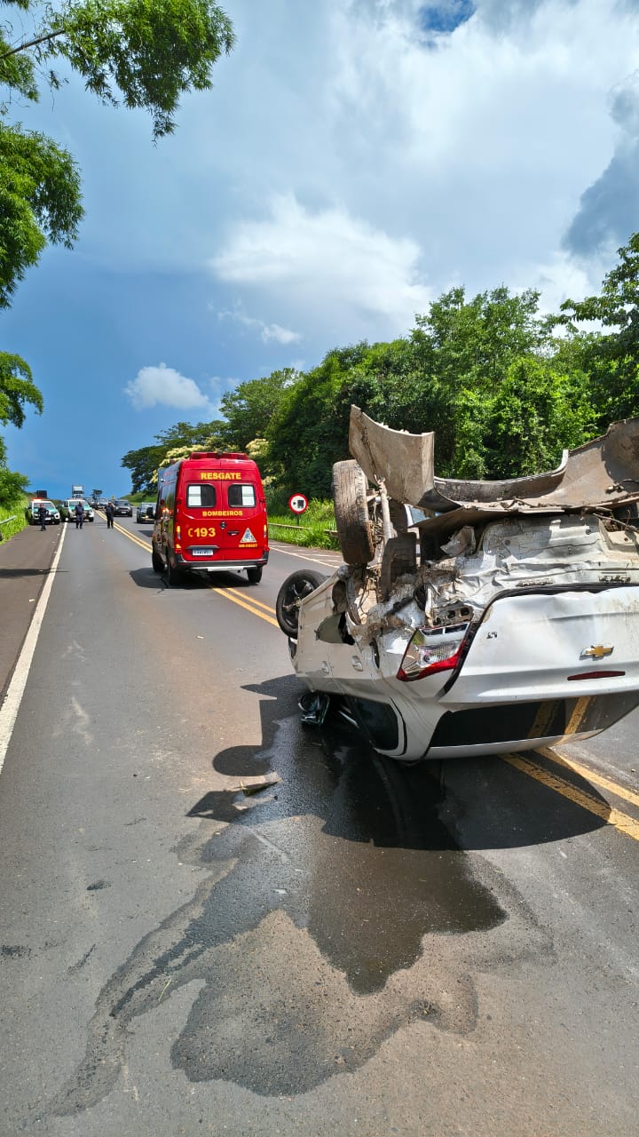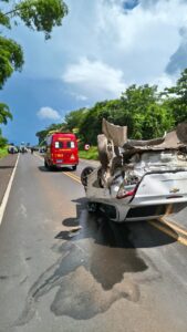 Foto – Veículo capotado na pista da SP-322 na tarde desta segunda-feira