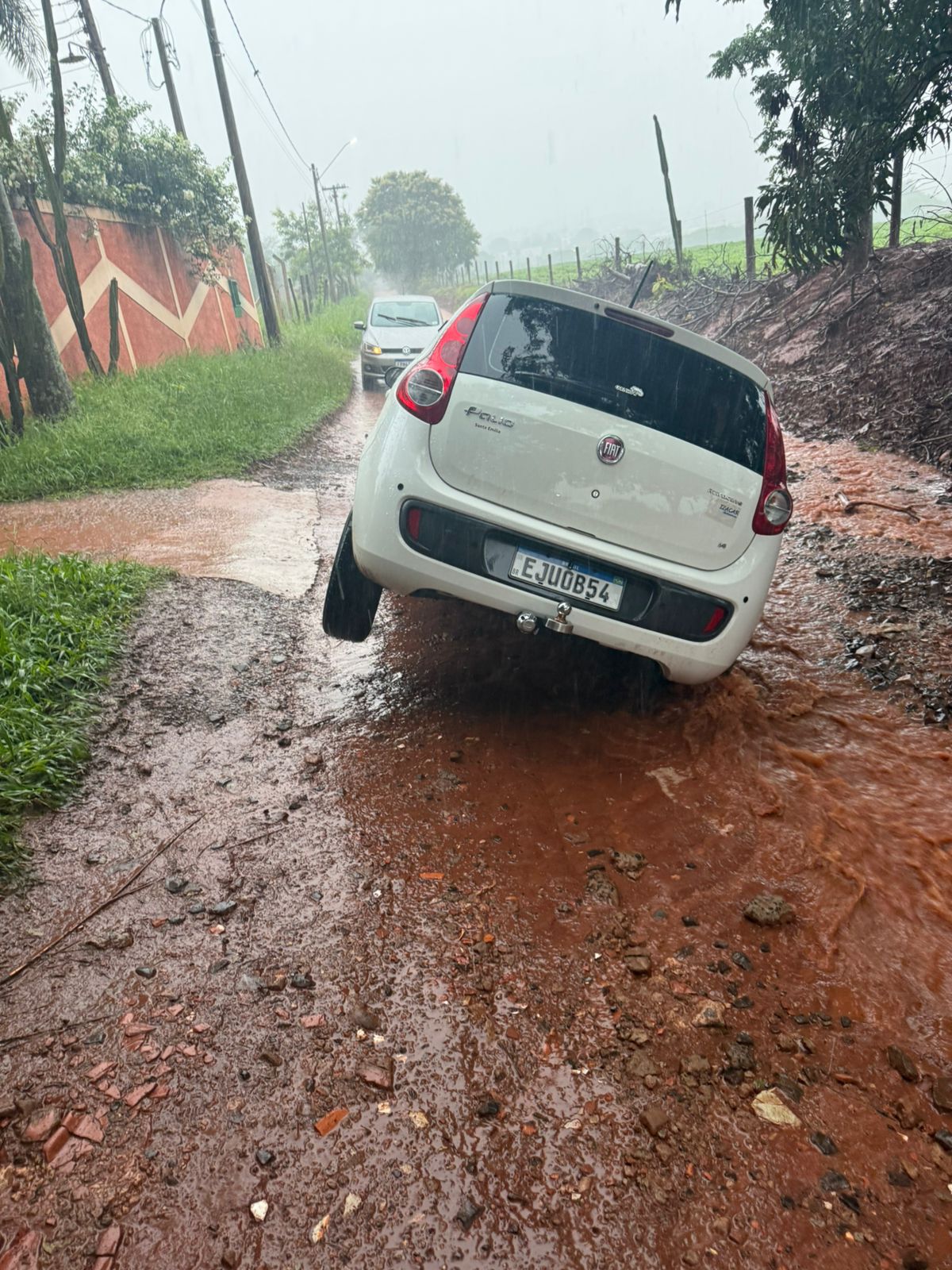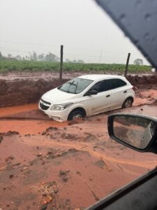 Foto – Veículos ilhados após atravessar trecho inundado na Via das Comitivas