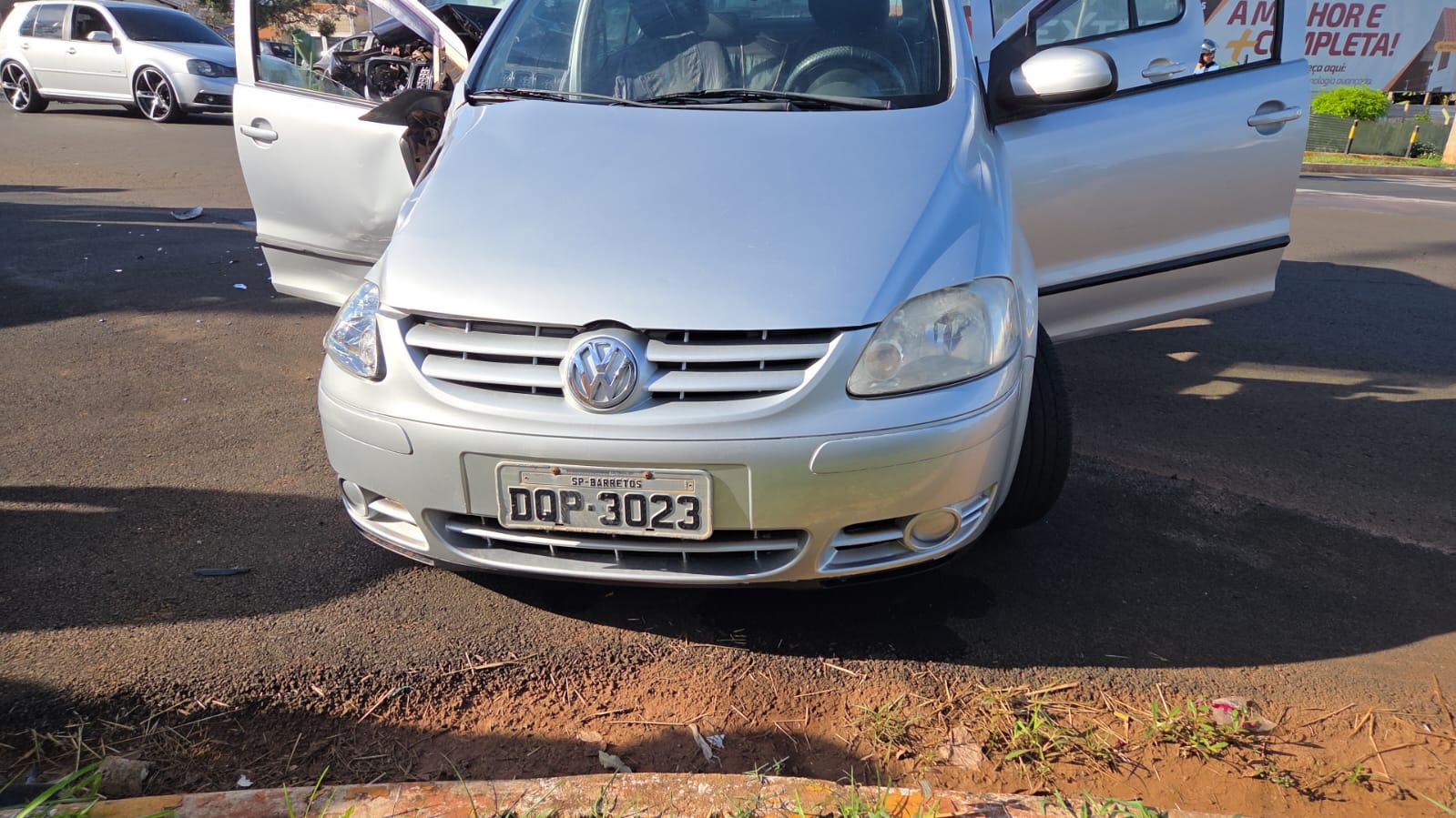 De acordo com o condutor do Fox, ele não teria visto o Jeep Renegade ao atravessar o cruzamento devido ao reflexo do sol.